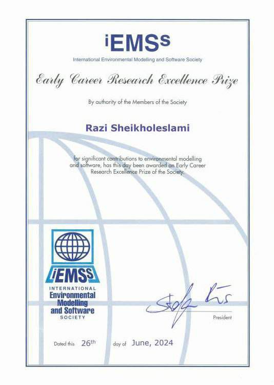 دکتر سید رضی شیخ الاسلامی، پژوهشگر برتر iEMSs 2024