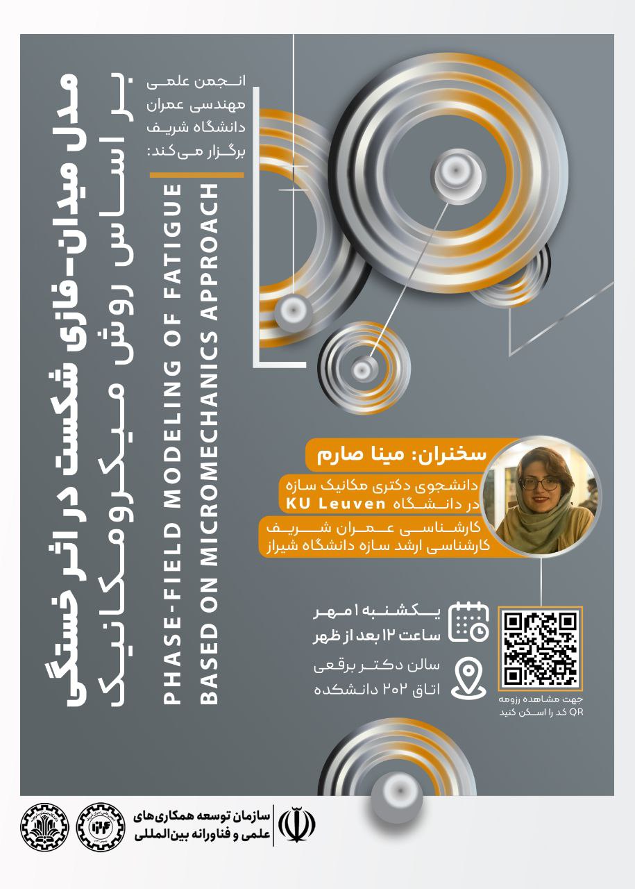 سخنرانی علمی سخنرانی علمی در دانشکده مهندسی عمران روز یکشنبه، یکم مهر، سخنرانی علمی با موضوع "مدل میدان-فازی شکست در اثر خستگی بر اساس روش میکرومکانیک" توسط خانم مینا صارم دانشجوی دکتری مکانیک سازه...