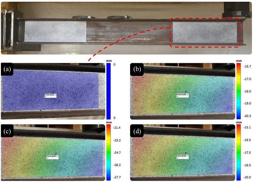 در این پژوهش آزمایشگاهی بررسی عملکرد تیر طرهای فولادی با اتصال نیمهگیردار تحت بارگذاری متمرکز ارائه شده است. نمونه آزمایشگاهی ساخته شده تحت بارگذاری کنترلشده توسط تغییرمکان قرار گرفت و رفتار آن با استفاده از سامانه تصویربرداری تماممیدان (DIC)ثبت شد. این روش امکان برداشت پیوسته تغییرمکان و کرنش از سطح تیر را فراهم گردید. اخذ نتایج آزمایشگاهی با تجهیزات آزمایشگاه کف قوی میسر گردید. نتایج حاصل برای بهروزرسانی مدل اجزای محدود(FEMU) بهکار رفت و میزان چرخش واقعی تکیهگاه تعیین شد. این پروژه نمونهای شاخص از توان آزمایشگاه در ترکیب آزمایشهای سازهای و روشهای نوین پایش سلامت و تولید دادههای مرجع برای تحلیل رفتار اتصالات فولادی است.