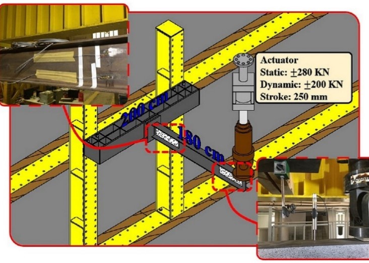 نمونهها پس از کنترل کیفیت دقیق، تحت بارگذاری خمشی چهار نقطه در مقیاس واقعی قرار گرفتند و رفتار آنها با استفاده از ابزار دقیق پیشرفته ثبت شد. این آزمایشها امکان ارزیابی اثرات توأمان تغییر درصد آرماتورهای فولاد، مقاومت مشخصه بتن و مشارکت تقویت خارجی بر سختی اولیه، ظرفیت نهایی، شکلپذیری و مکانیسمهای گسیختگی را فراهم کرد.